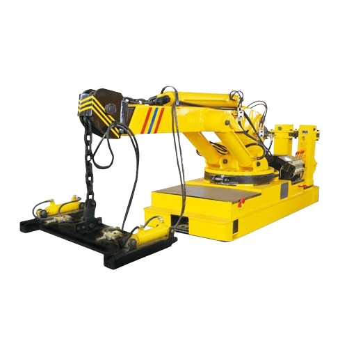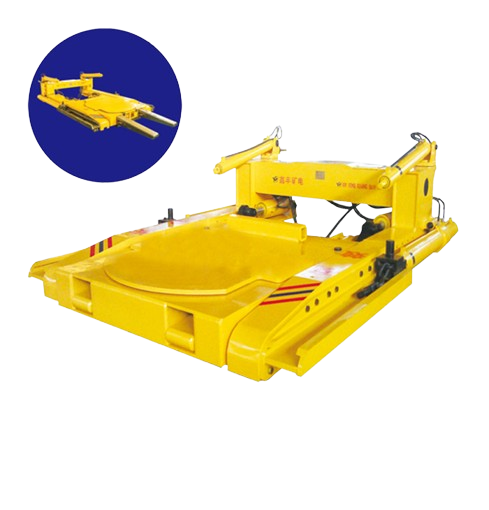 TYA型液压支架调移装置与绞车、平板车、乳化液泵站、轨道配套使用。是用于液压支架的运输与安装的专用设备。TYA型的底盘可以上下位移、倾斜。底盘上设有旋转盘,可以 360 度旋转。液压支架放置在旋转盘上通过外力可以按照要求自由旋转。液压支架的装车、卸车全部由液压操纵阀操作, 推拉装置将液压支架拉上产品 ,调整方向后,运输到指定的安装地点,再由推拉装置将液压支架推下设备,即安装完毕 ,既方便快捷,又安全可靠 。